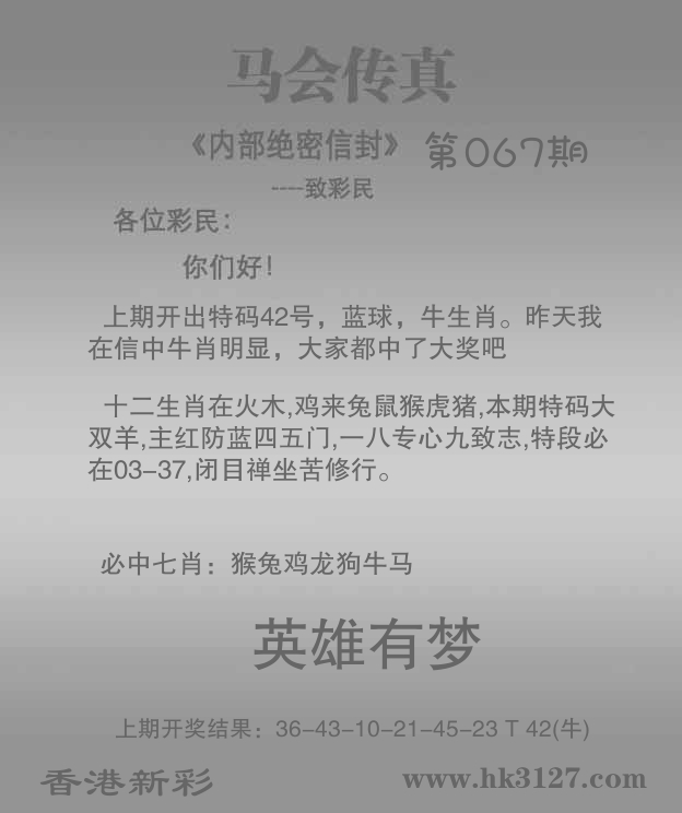 | 067期: ④肖 | 猴羊兔虎 | 马25中 |
