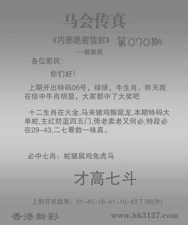 | 070期 | 兔 | 3尾 | 蓝单 | 12-21 | 09狗 |