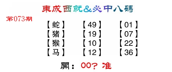 | 071期: ⑧肖 | 羊猴牛猪鸡马鼠狗 | ????中 |