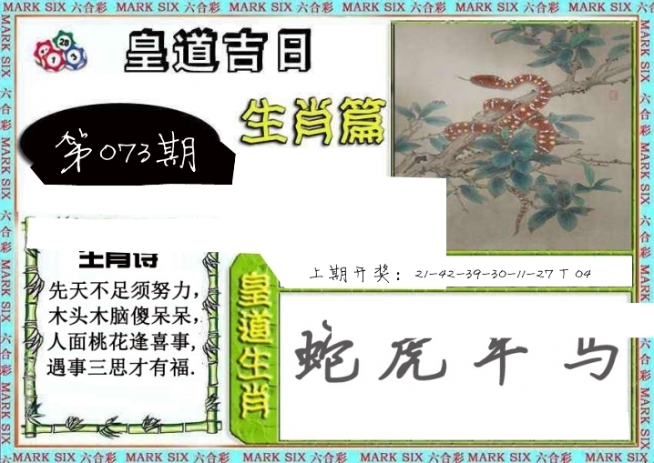 | 062期: ⑦肖 | 兔蛇龙虎鸡鼠牛 | 蛇14中 |