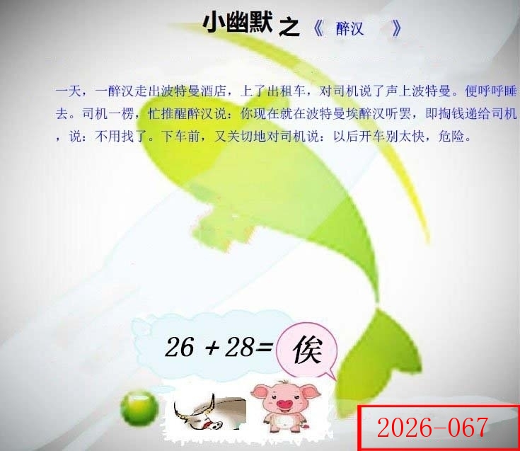 | 067期 | 马 | 1尾 | 绿单 | 35-44 | 25马 |