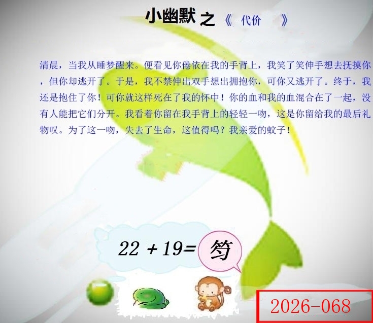 | 068期: ⑧肖 | 龙牛虎蛇狗鼠兔猴 | 马01中 |